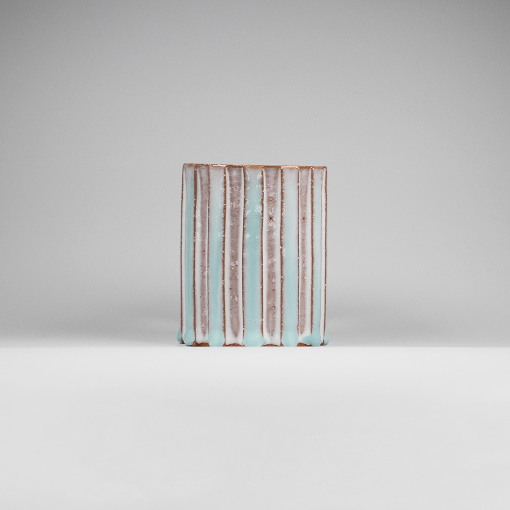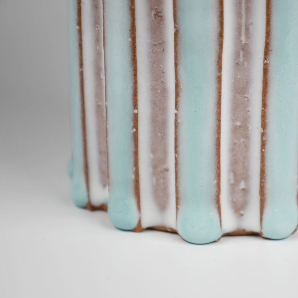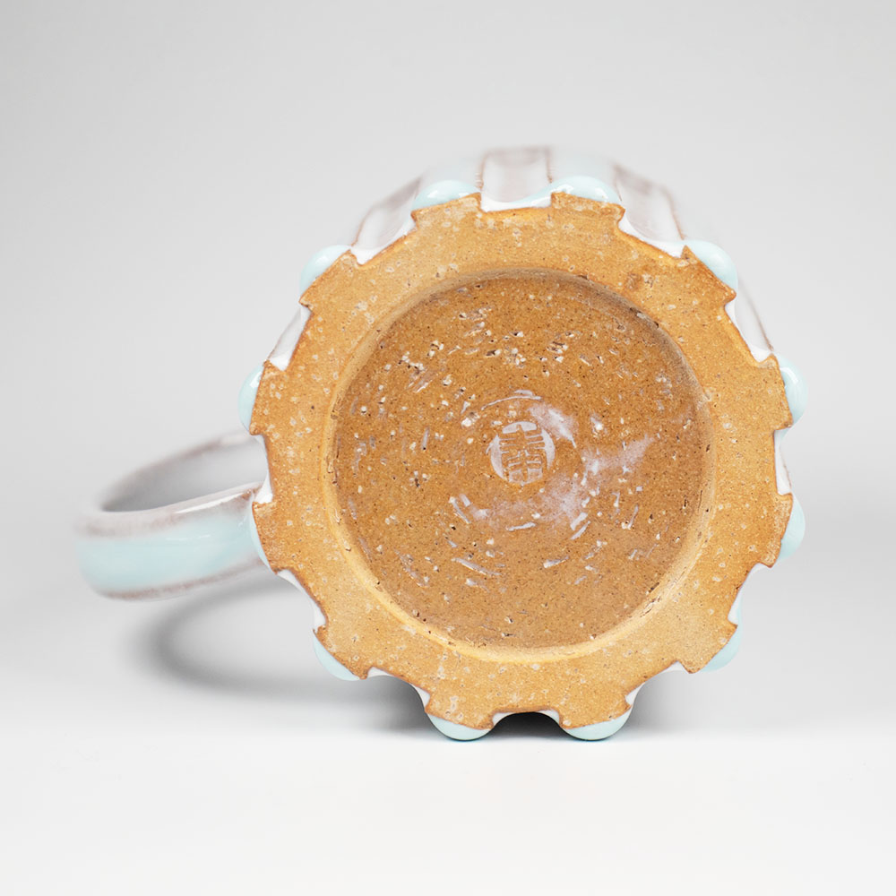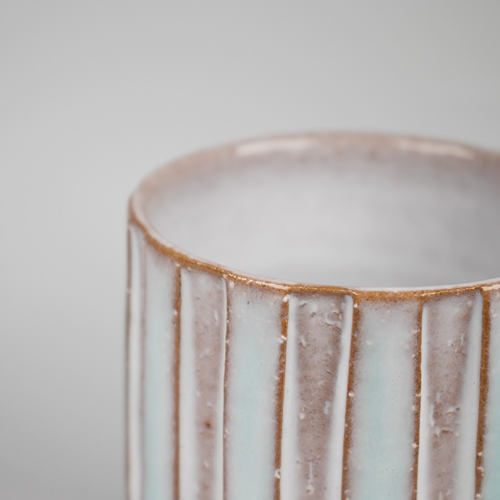 凹凸があり、白と緑のストライプがお洒落で存在感のあるマグカップです。