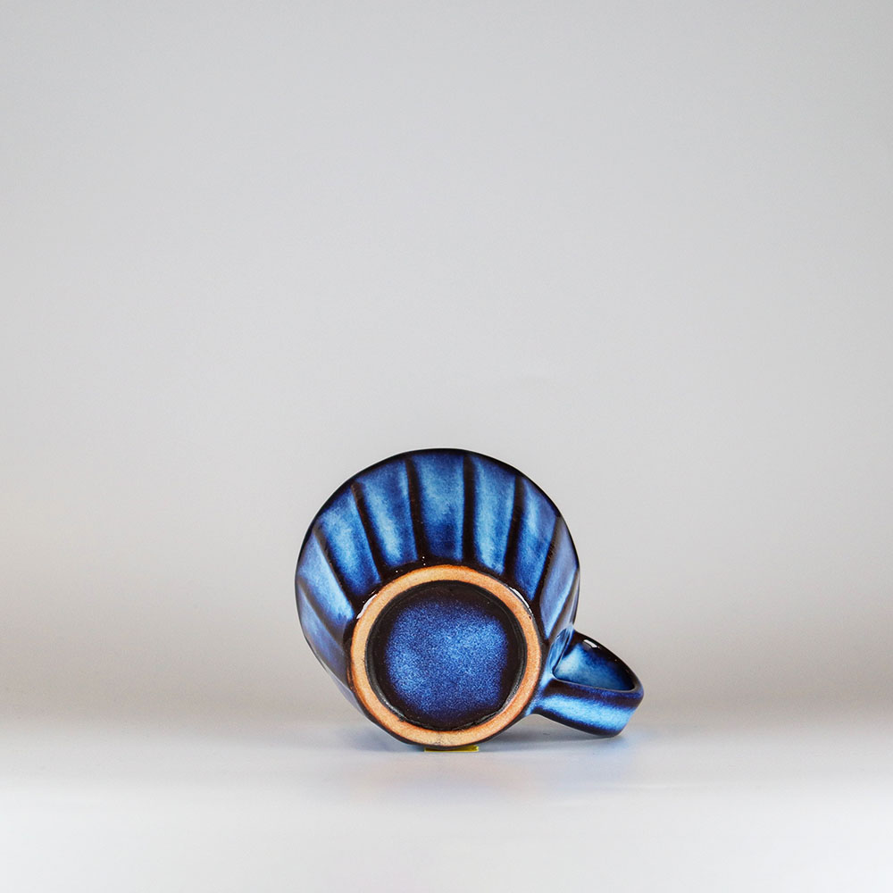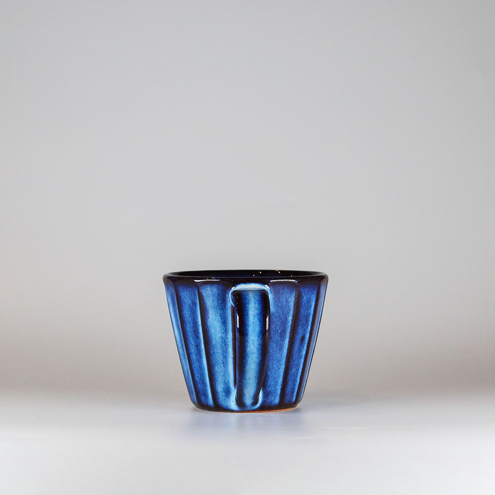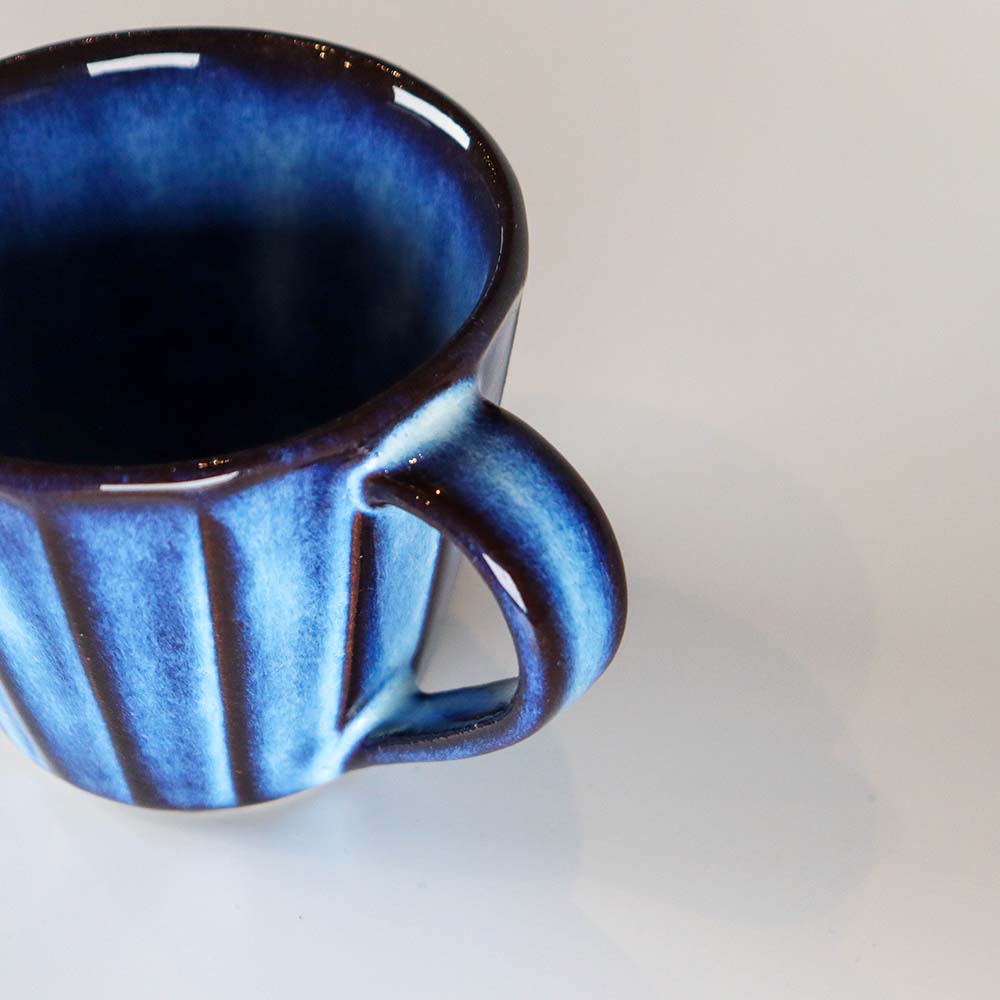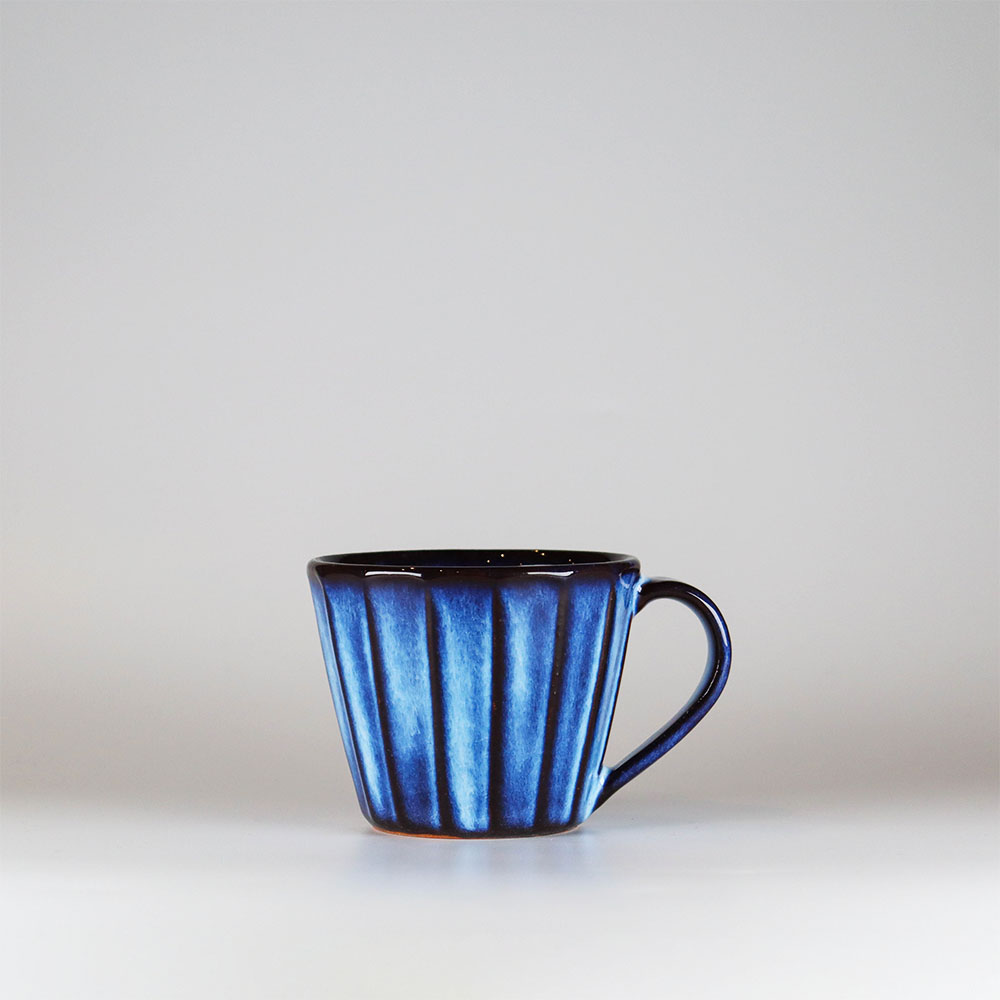 手作業で面取りしたカフェオレカップです。口当たりが良く、持ちやすい取手に仕上げております。面取りのラインが素敵なスタイリッシュなマグカップです。