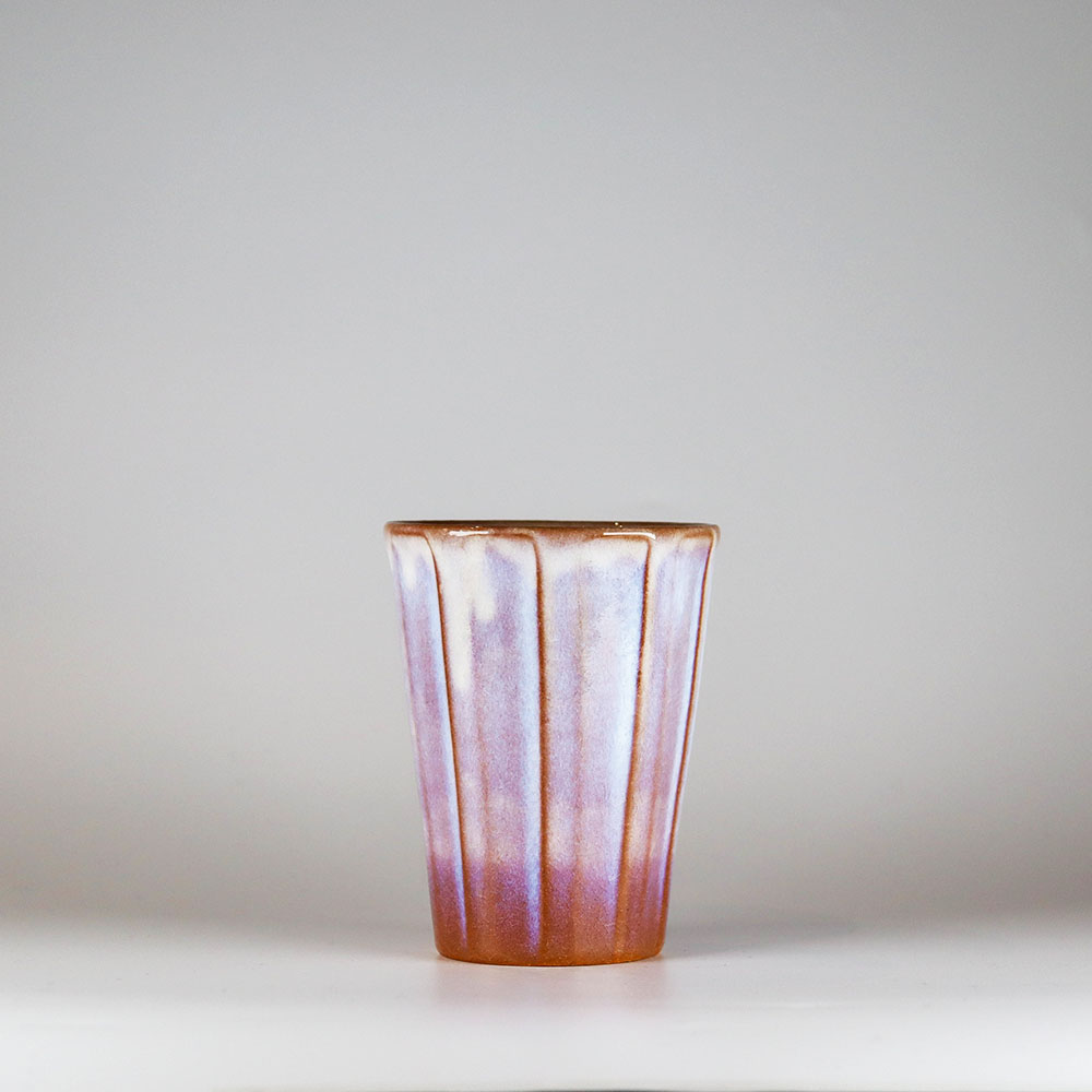 手作業でしのぎをしたフリーカップです。口も広いので氷をたっぷり入れてアイスコーヒーやアイスカフェラテなどお好きな飲み物を入れて。女性の方でも持ちやすいサイズ感です。