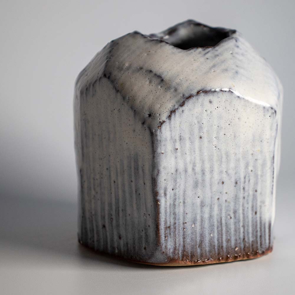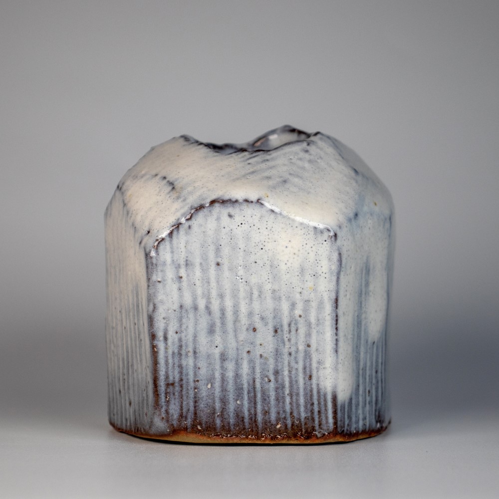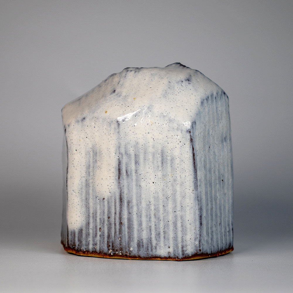 見島土を使いまして外側はカットして仕上げました。