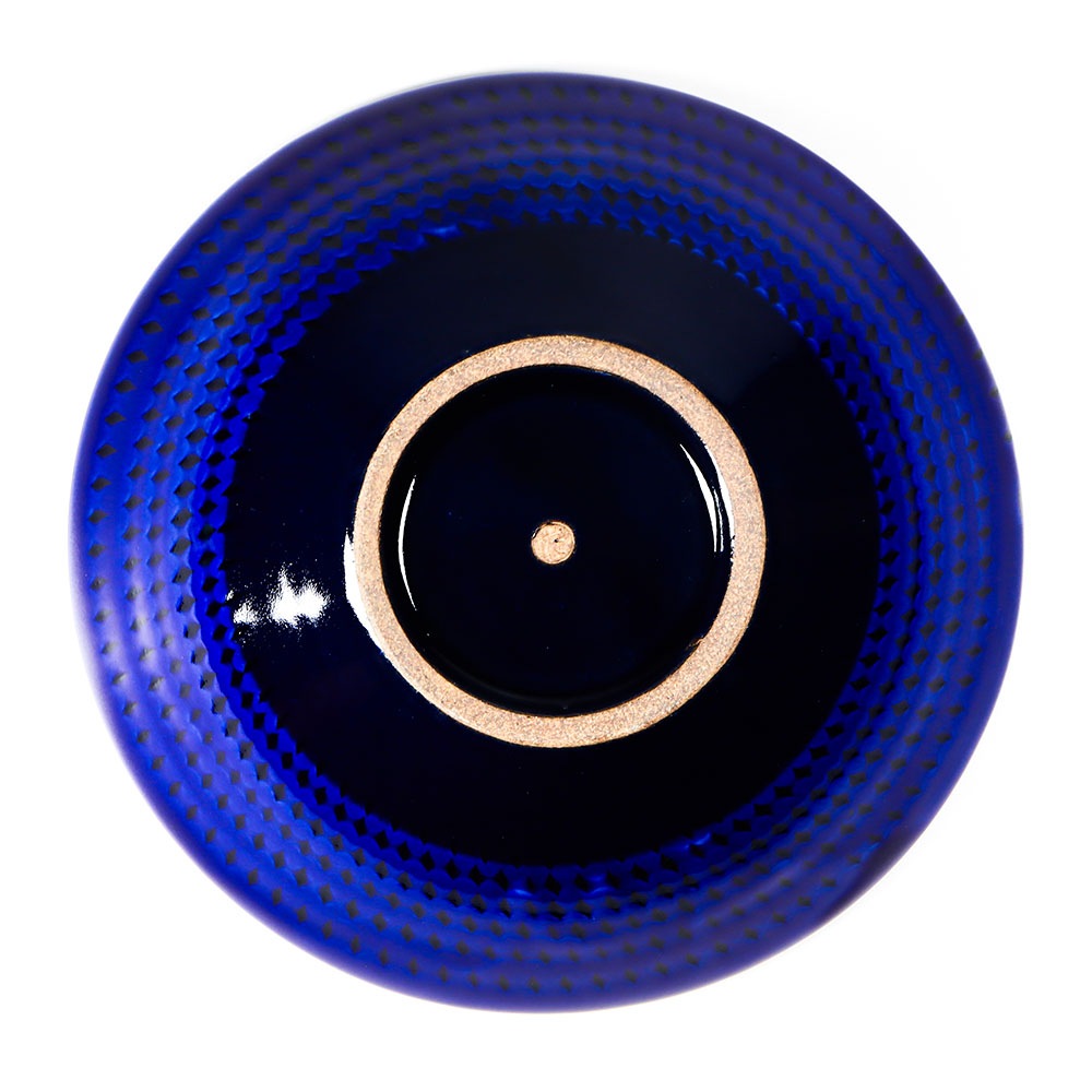 日本では、ラピスラズリは瑠璃と呼ばれ、仏教の七宝のひとつとされ、仏典『無量寿経』や『法華経』に瑠璃の記述があります。長年瑠璃釉に取り組み、公募展にて多くの受賞歴をもつ当店オリジナルの釉薬。